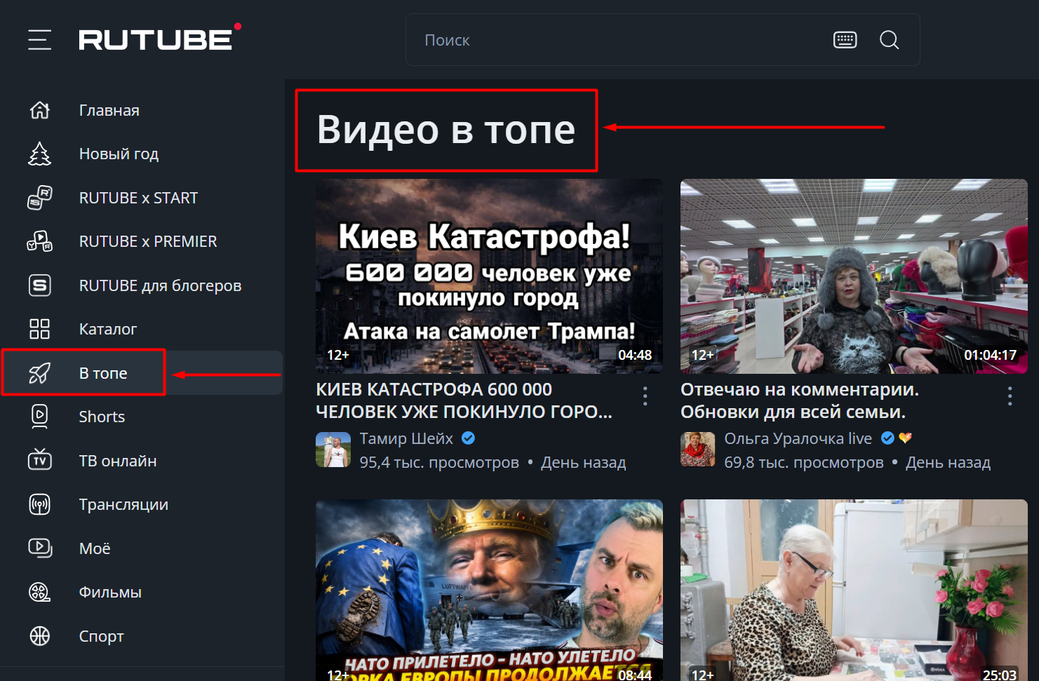 ВЫВОД ВАШЕГО ВИДЕО RUTUBE - В КАТЕГОРИЮ "В ТОПЕ".